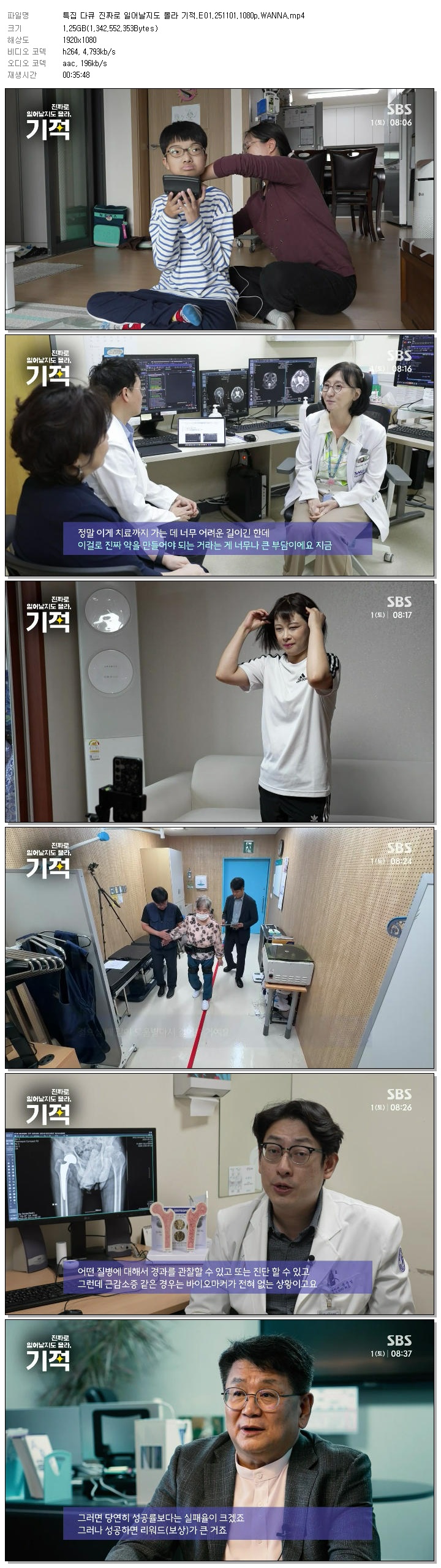 | [SBS] 특집 다큐 진짜로 일어날지도 몰라 기적.E01.251101.1080p.WANNA.mp4 | 1.3 G | 00:35:48 | 1920x1080 |