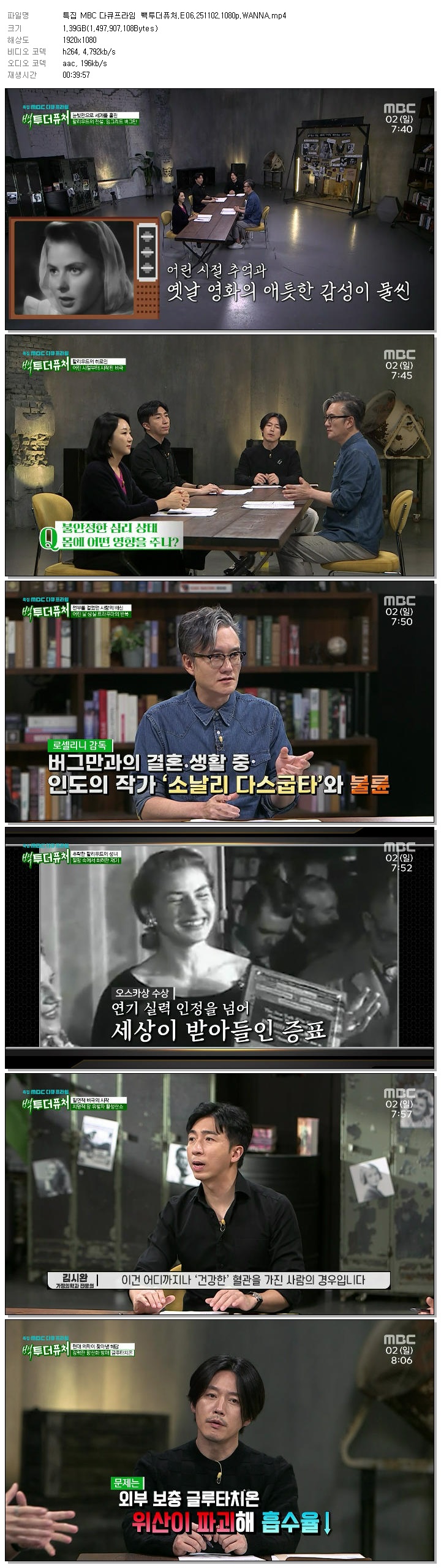 | [MBC] 특집 MBC 다큐프라임 빽투더퓨처.E06.251102.1080p.WANNA.mp4 | 1.4 G | 00:39:57 | 1920x1080 |