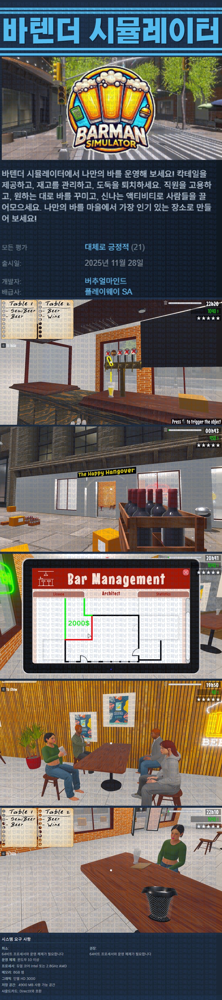 [한글무설치] 바텐더 시뮬레이터 v20251128 다시보기 토렌트