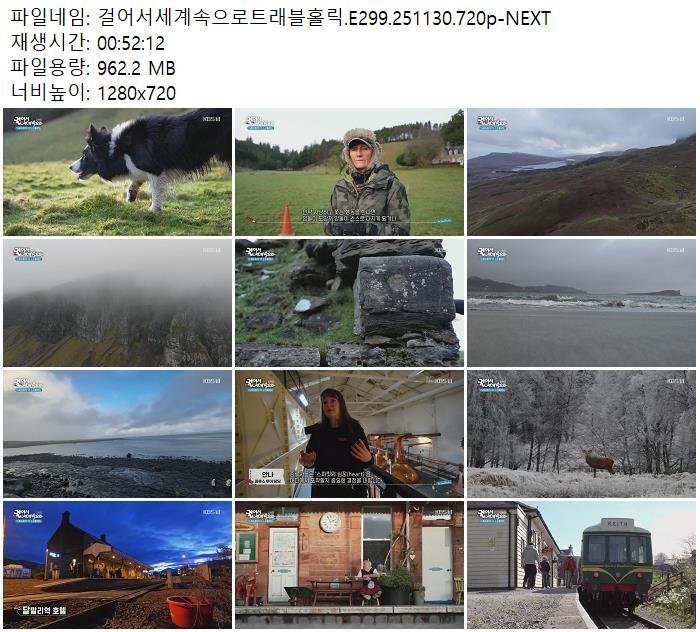| 걸어서세계속으로트래블홀릭.E299.251130.720p-NEXT.mp4 | 962.2 M | - | 1280x720 |