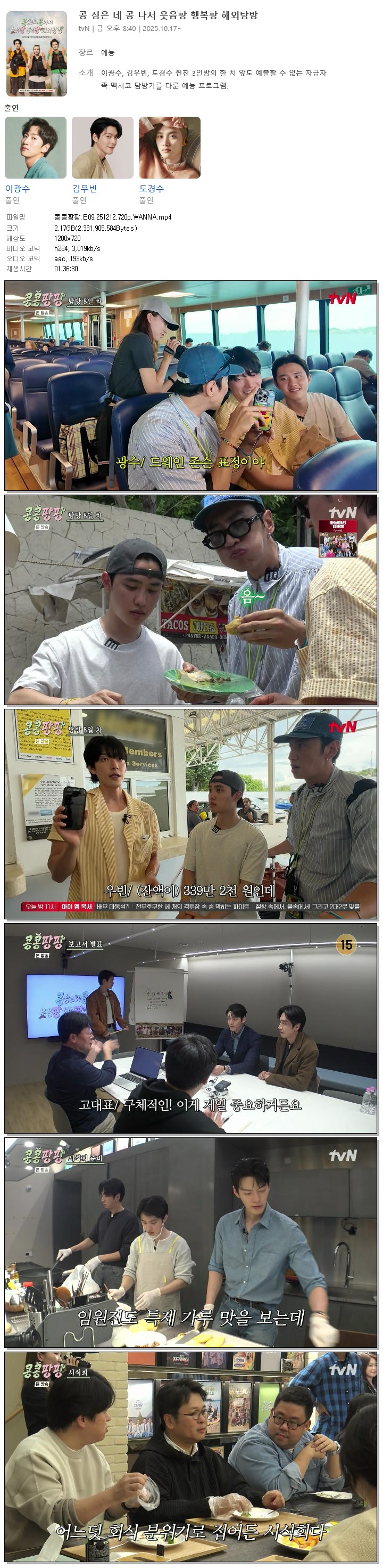 | [TVN] 콩콩팡팡.E09.251212.720p.WANNA[이광수, 김우빈].mp4 | 2.2 G | 01:36:30 | 1280x720 |