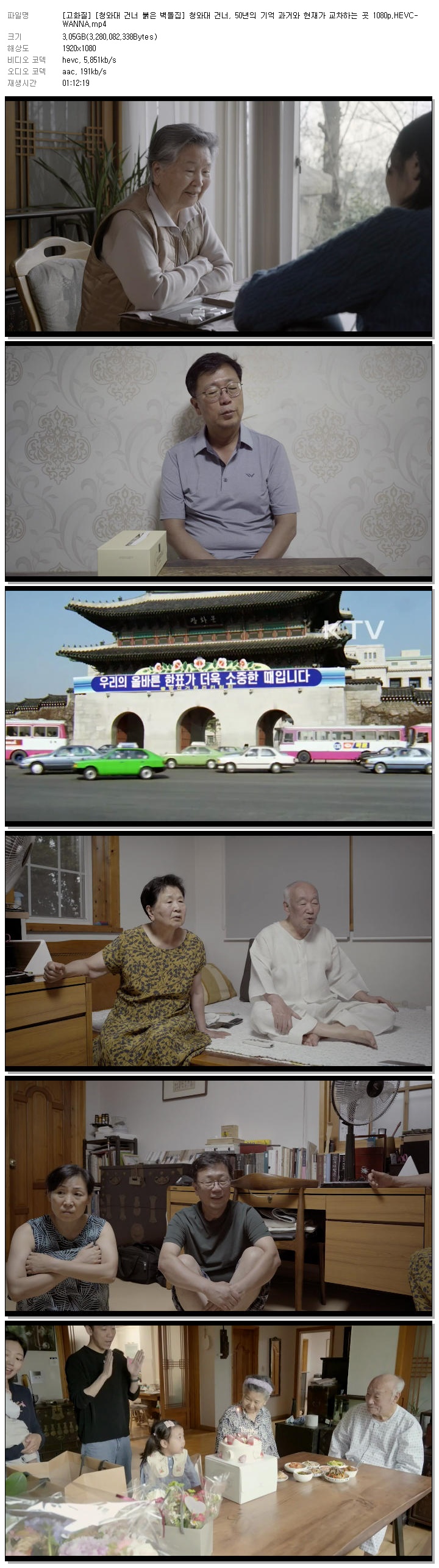 [고화질] [청와대 건너 붉은 벽돌집] 청와대 건너, 50년의 기억 과거와 현재가 교차하는 곳 1080p.HEVC-WANNA.mp4 3.1 G 01:12:19 1920x1080