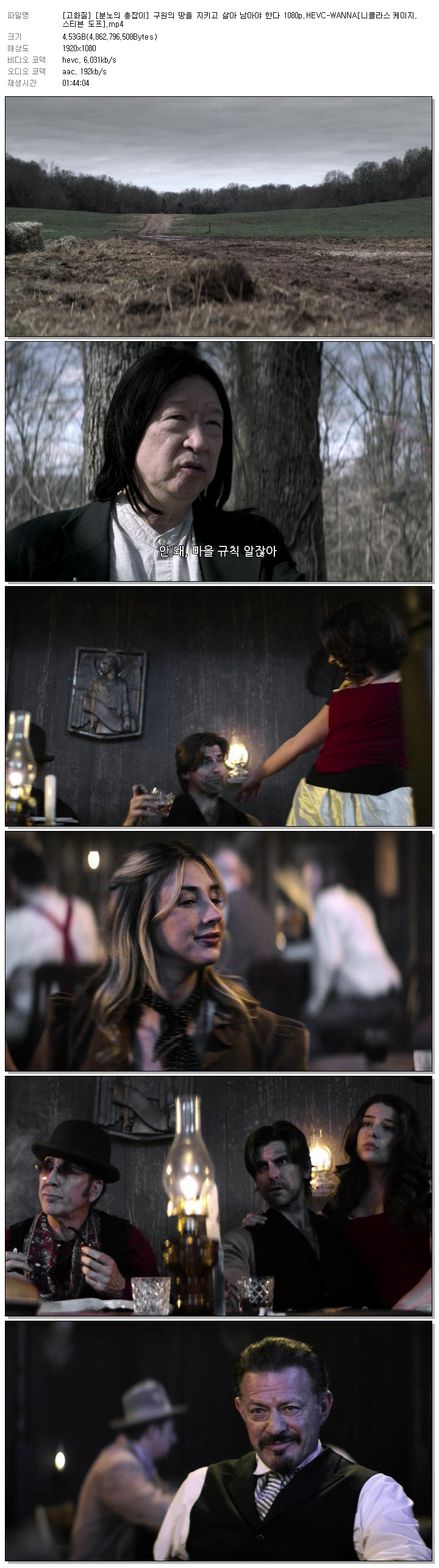 | [고화질] [분노의 총잡이] 구원의 땅을 지키고 살아 남아야 한다 1080p.HEVC-WANNA[니콜라스 케이지, 스티븐 도프].mp4 | 4.5 G | 01:44:04 | 1920x1080 |