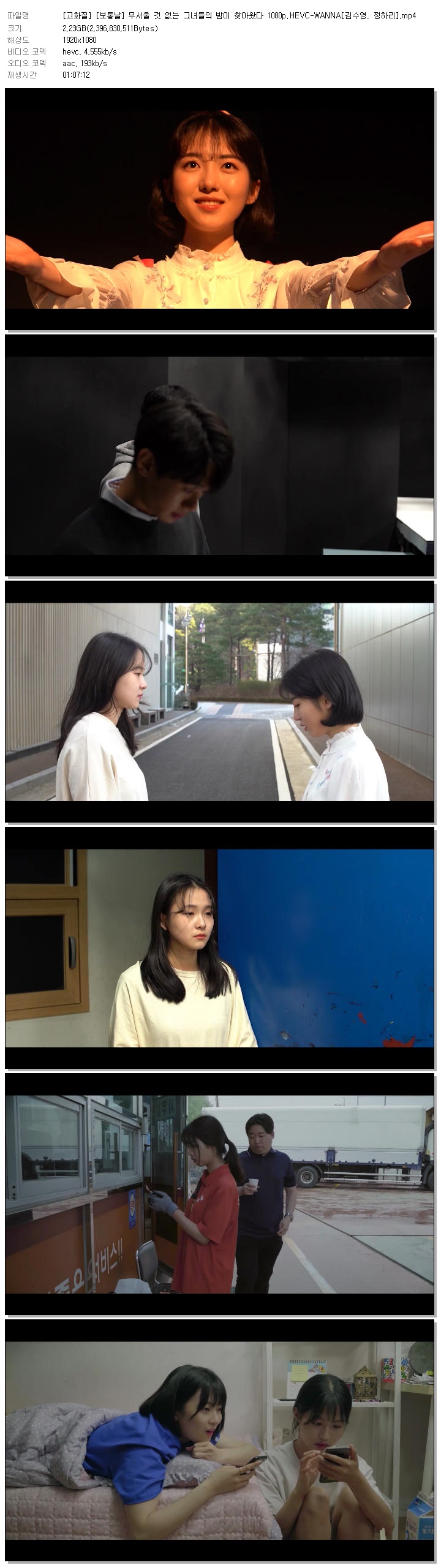 [고화질] [보통날] 무서울 것 없는 그녀들의 밤이 찾아왔다 1080p.HEVC-WANNA[김수영, 정하리].mp4 2.2 G 01:07:12 1920x1080