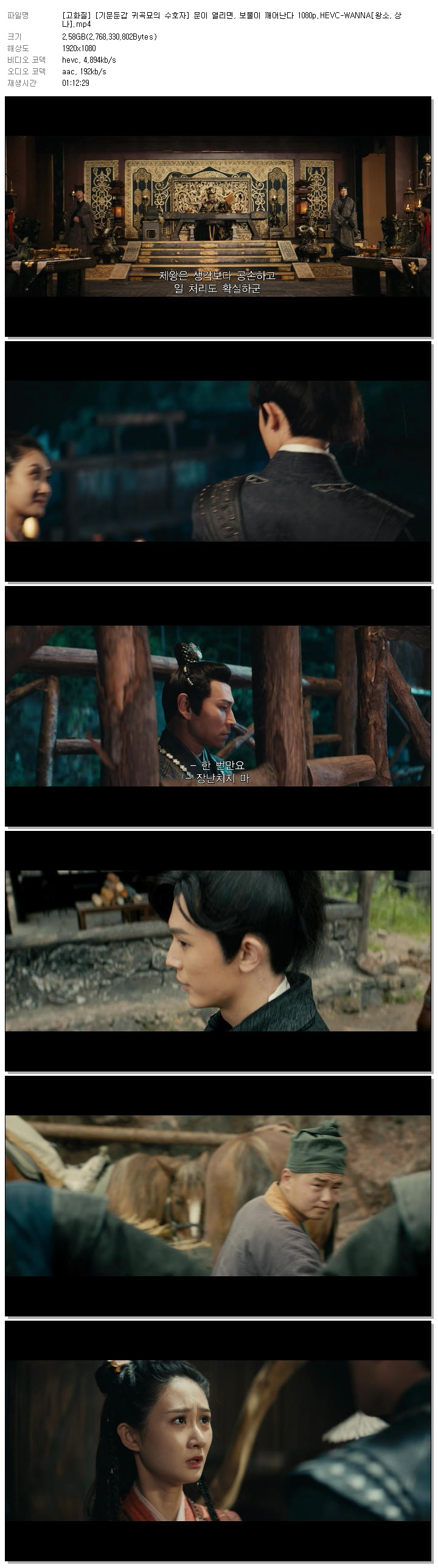 | [고화질] [기문둔갑 귀곡묘의 수호자] 문이 열리면, 보물이 깨어난다 1080p.HEVC-WANNA[왕소, 상나].mp4 | 2.6 G | 01:12:29 | 1920x1080 |