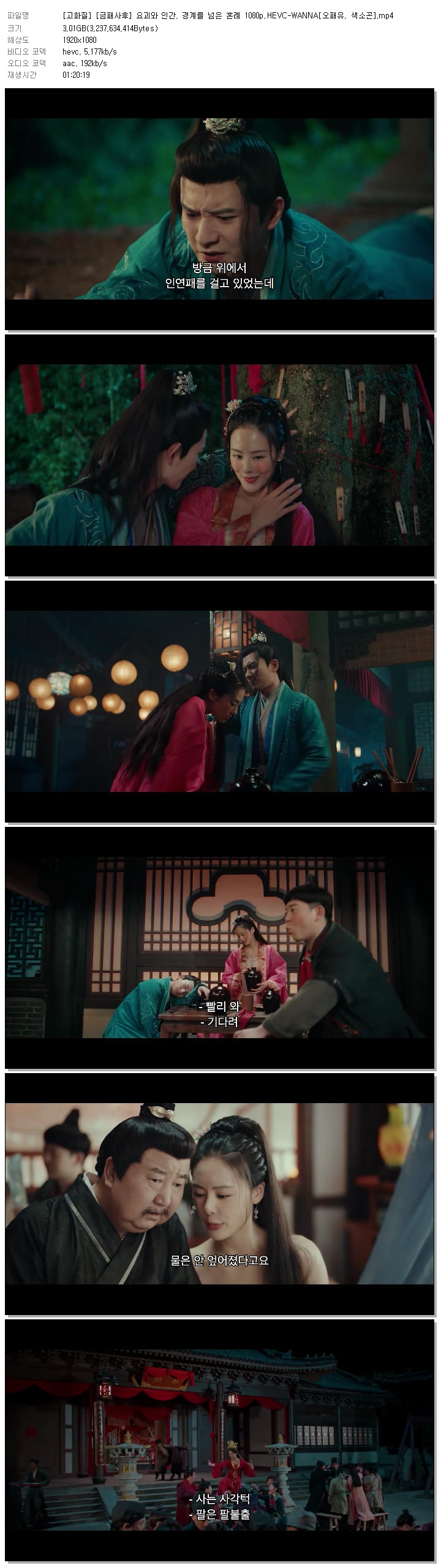 [고화질] [금패사후] 요괴와 인간, 경계를 넘은 혼례 1080p.HEVC-WANNA[오패유, 색소곤].mp4 3 G 01:20:19 1920x1080