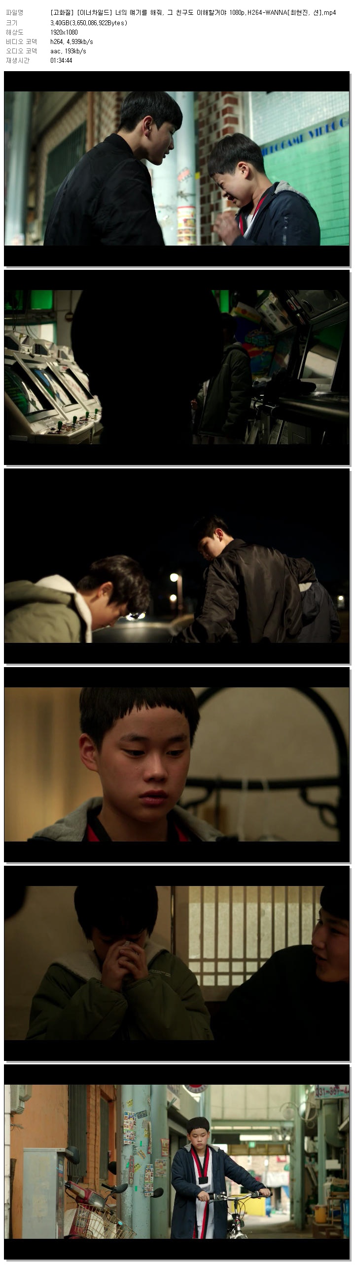 | [고화질] [이너차일드] 너의 얘기를 해줘, 그 친구도 이해할거야 1080p.H264-WANNA[최현진, 션].mp4 | 3.4 G | 01:34:44 | 1920x1080 |