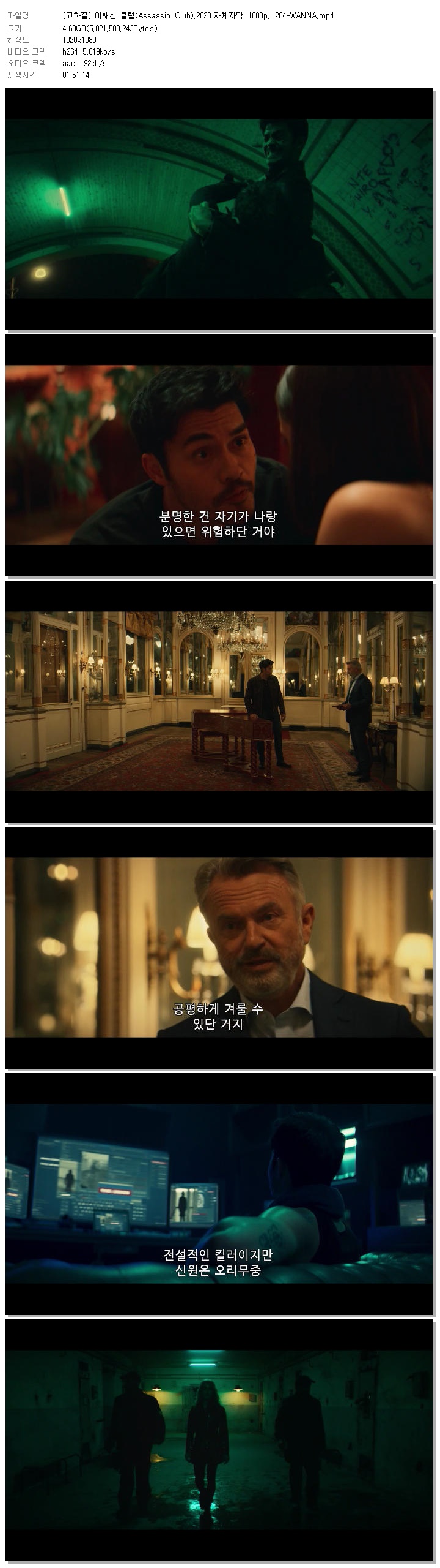 | [고화질] 어쌔신 클럽(Assassin Club).2023 자체자막 1080p.H264-WANNA.mp4 | 4.7 G | 01:51:14 | 1920x1080 |